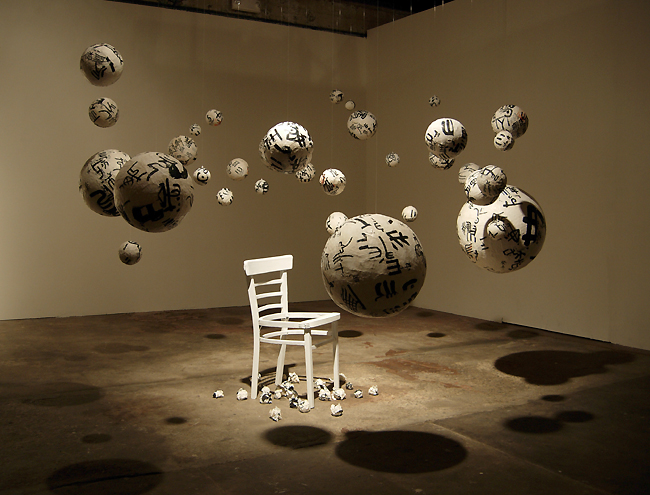 “Realized Opinion” 2009, calligraphy studies and mixed media installation, dimension variable.