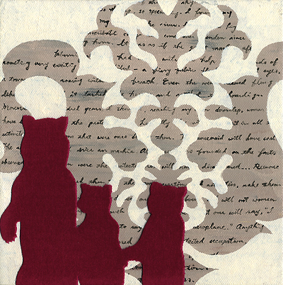 "Expectation," 2006, 8"X8", acrylic and fabric on canvas. Private Collection.