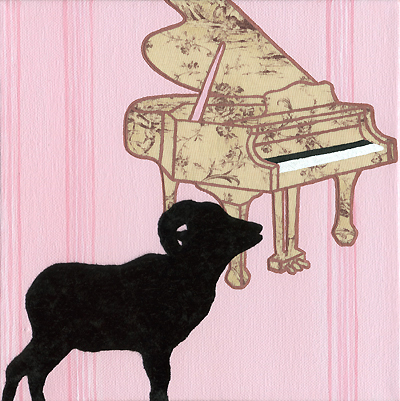 "Homogeny," 2006, 8"X8", acrylic and fabric on canvas.