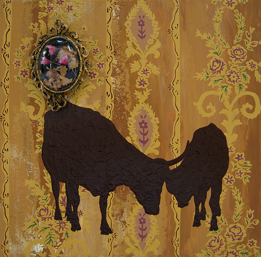 "Prestige,"2006, 8"X8", acrylic and brooch on canvas.