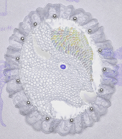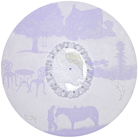 "Community Property," 2006, 20" diameter, acrylic, embroidery and mixed media on canvas