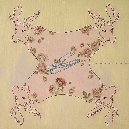 "Moose III: Dissipate," 2005, 18"X18", acrylic, fabric and embroidery on canvas