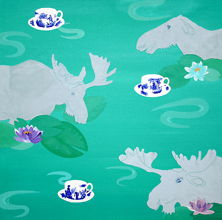 "Spa Talk," 2006, 20"X20", acrylic, suede and mixed media on canvas