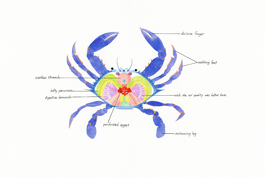 "Crab," 2008, 11"X15", watercolor and ink on paper. (in private collections)